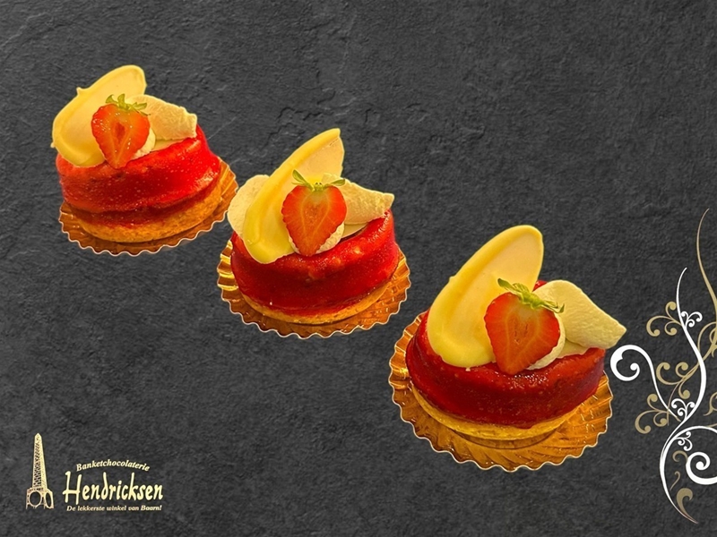 Dit heerlijke taartje bestaat uit een vers krokant gebakken hazelnootprogres met een vulling van romige zelfgekookte mokkacrème. En afgemaakt met vers geklopte luchtige slagroom.