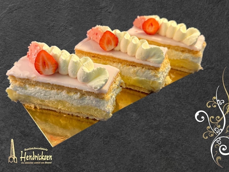 Dit heerlijke taartje bestaat uit een vers krokant gebakken hazelnootprogres met een vulling van romige zelfgekookte mokkacrème. En afgemaakt met vers geklopte luchtige slagroom.