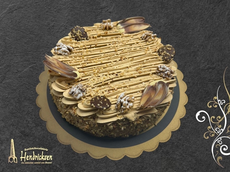 Onze mokkataart is gemaakt van een luchtige cake met roomboter vulling, gemaakt van een zelfgekookt mokka extract.